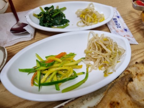 시금치, 콩나물, 숙주, 애호박, 고사리