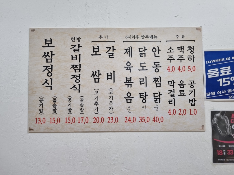 보쌈정식, 한방갈비찜 정식이 메인이에요