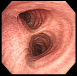 기관지 내시경은 숨을 쉬는 기관지내부를 검사하는 것으로 식도 내시경과는 다릅니다. 특히 중 상부 식도암의 경우에는 뒤쪽에서부터 기관 및 기관지를 침범하는 경우가 있으며, 또 식도에 암이 있는 환자의 경우에 후두나 기관 또는 기관지에 암이 동반될 가능성이 있기 때문에 수술 전에는 꼭 기관지내시경 검사를 시행하여 침범여부를 확인하는 것이 좋습니다.